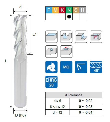 Parametry techniczne produktu Frez węglikowy VHM do aluminium 3 pióra fi 12,0 mm L150