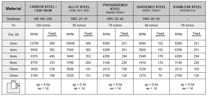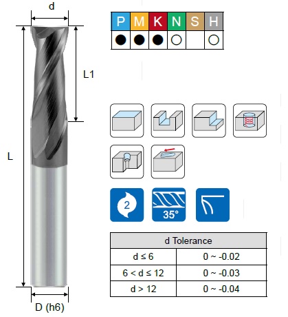Parametry techniczne produktu Frez węglikowy VHM 2 pióra fi 4,0 mm L100 długi 55HRC