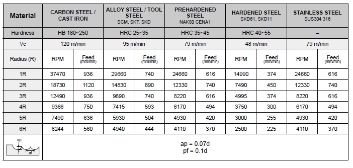 Parametry techniczne produktu Frez węglikowy VHM kulisty kulowy 2 pióra fi 3,0 mm R1,5 55HRC