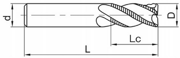 Parametry techniczne produktu Frez VHM węglikowy zgrubny gryzak fi 10 mm TINSIN