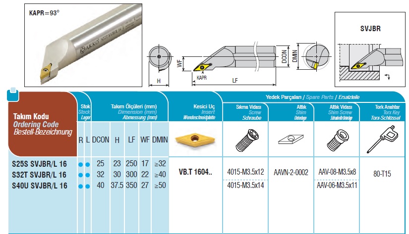 Parametry techniczne produktu Nóż tokarski Akko S25S SVJBL 16 VBMT 1604..
