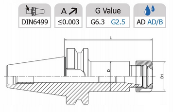 Parametry techniczne produktu Oprawka zaciskowa BT40 L160 do tulejek ER32