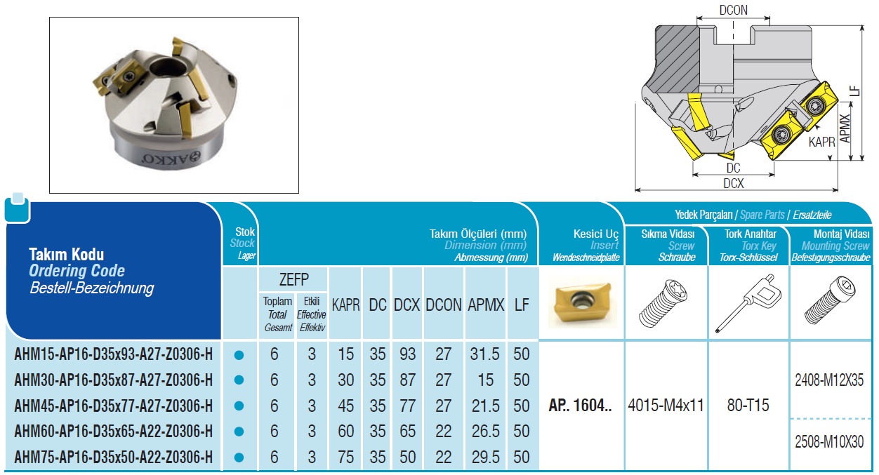 Parametry techniczne produktu Głowica kątowa Akko AHM45 AP16 D35x77 A27 Z0306-H