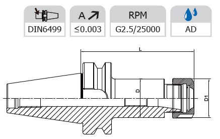 Parametry techniczne produktu Oprawka BT40-ER20A-70