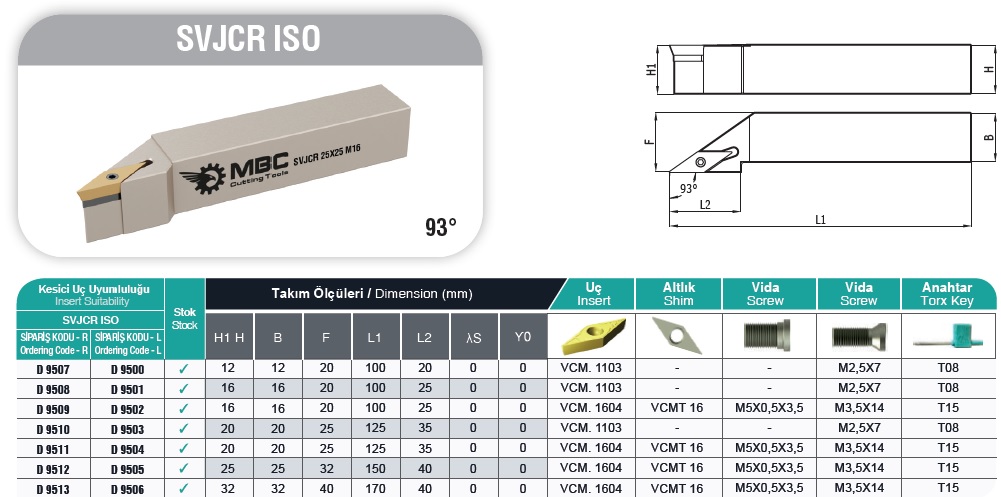 Opis produktu Nóż tokarski MBC SVJCR 1616 H11 VCMT 1103..