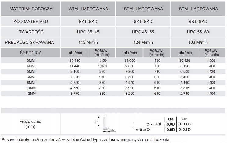 Parametry techniczne produktu Frez VHM KNS D5x6x13x50x4F 65HRC ACO VHM
