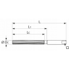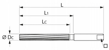 - Rozwiertak ręczny wykonany ze stali szybkotnącej (HSS) wg normy DIN206-B z ostrzami skrętnymi.