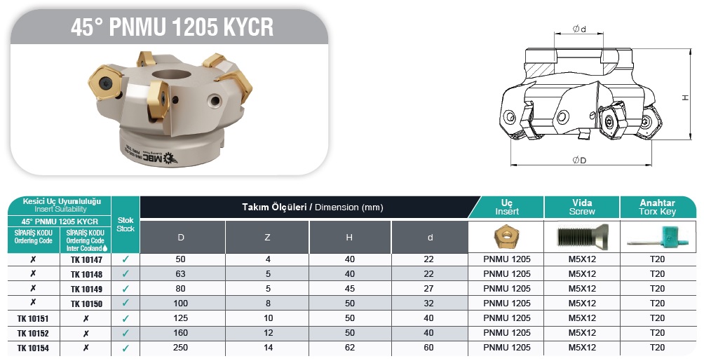 Opis produktu Głowica frezarska MBC EM45 D63x5 A22 PNMU..1205