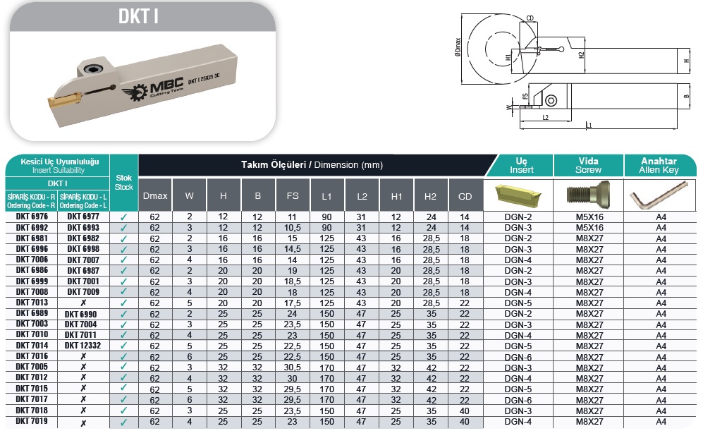 Parametry techniczne produktu Nóż przecinak MBC DKT I-R 2020 3C DGN 3102