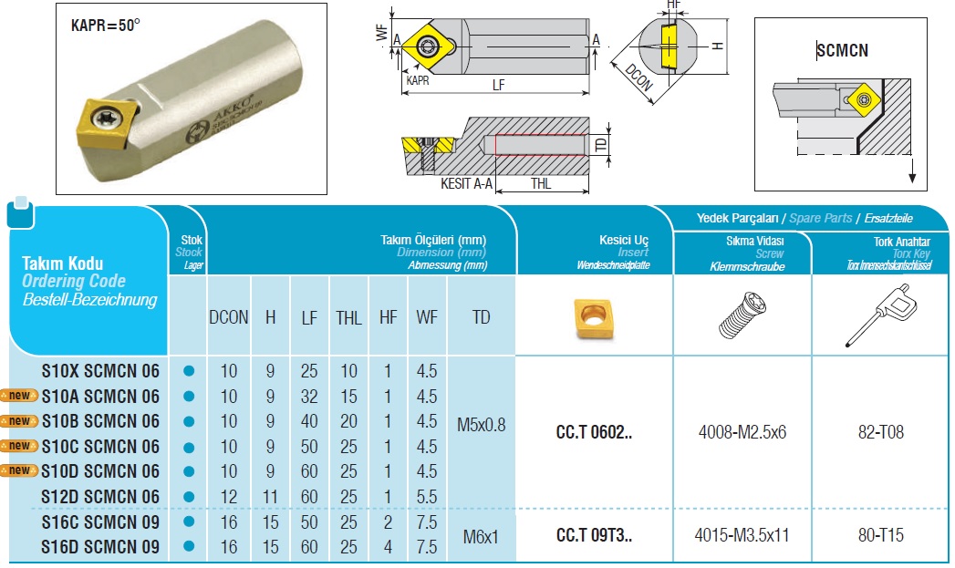 Akcesoria do produktu Nóż tokarski Akko S12D SCMCN 06 CCMT 0602..