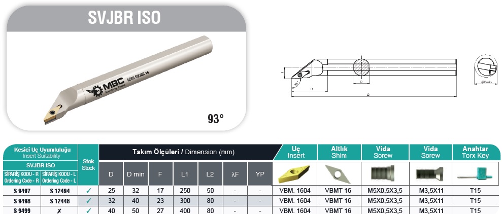 Opis produktu Nóż wytaczak MBC S25S SVJBL 16 VBMT 1604