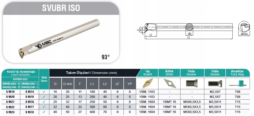 Opis produktu Nóż wytaczak MBC S40V SVUBL 16 VBMT 1604