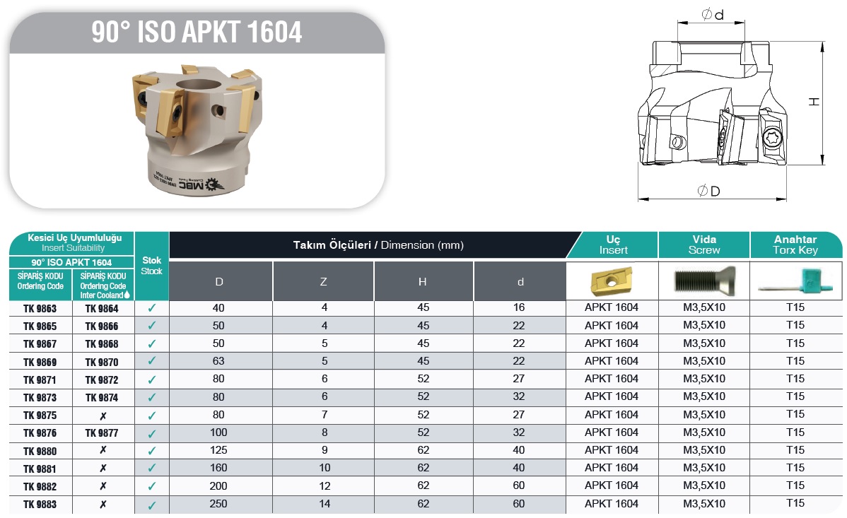 Parametry techniczne produktu Głowica składana 90* D100 na APKT 160408 MBC