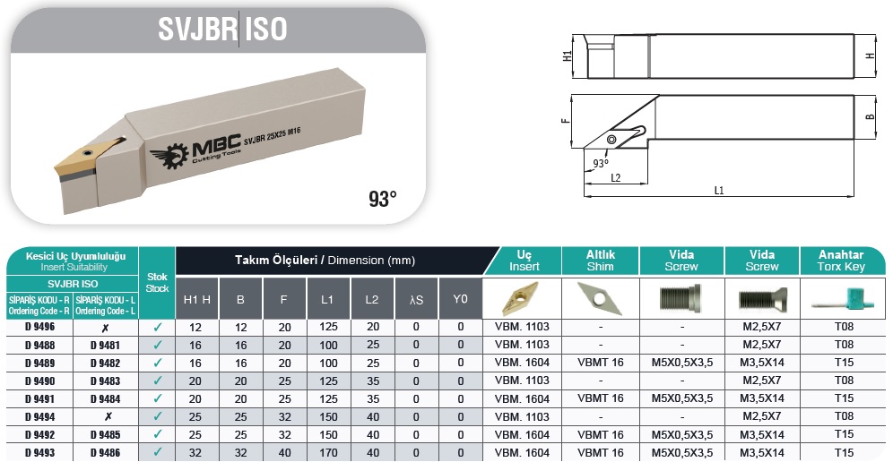 Opis produktu Nóż tokarski MBC SVJBL 2020 K16 - VBMT 1604