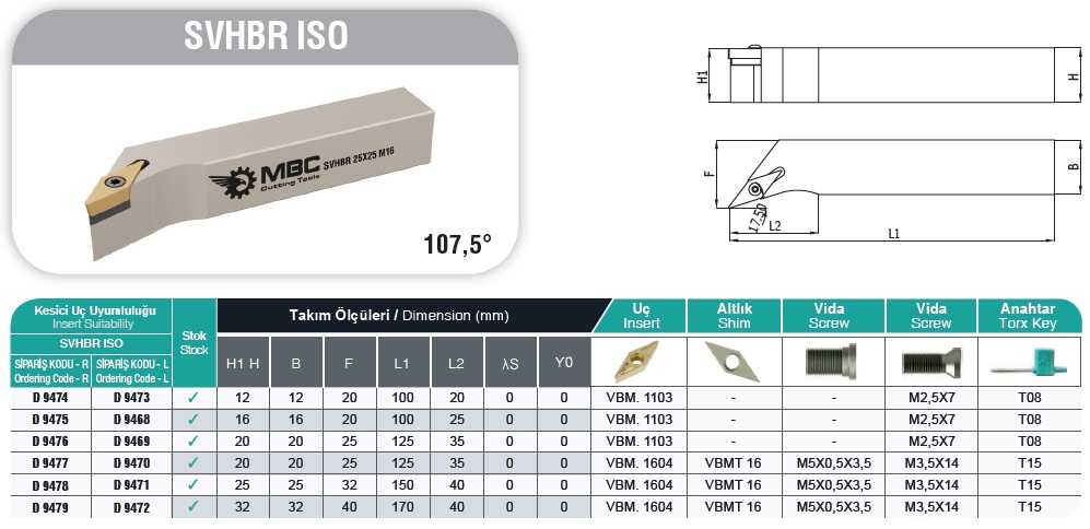 Opis produktu Nóż tokarski MBC SVHBL 2525 M16 - VBMT 1604