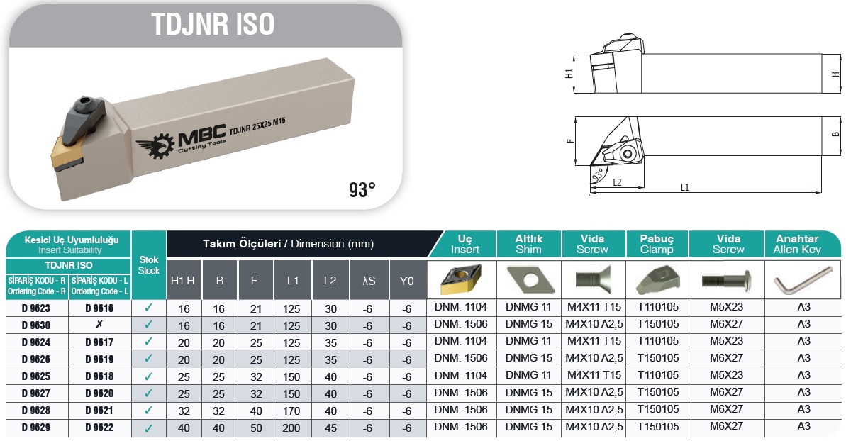Opis produktu Nóż tokarski MBC TDJNL 2020 K15 DNMG 1506