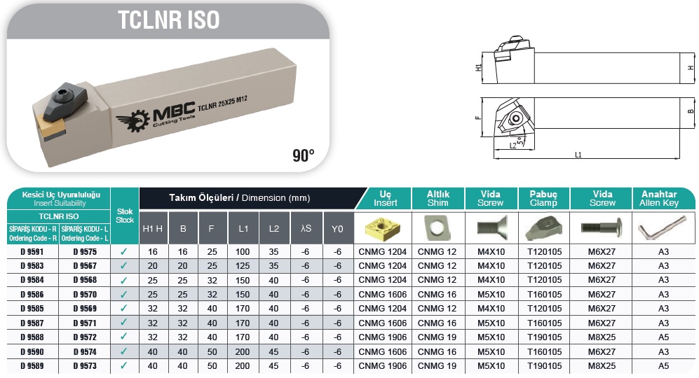 Parametry techniczne produktu Nóż tokarski MBC TCLNL 2020 K12 CNMG 1204..