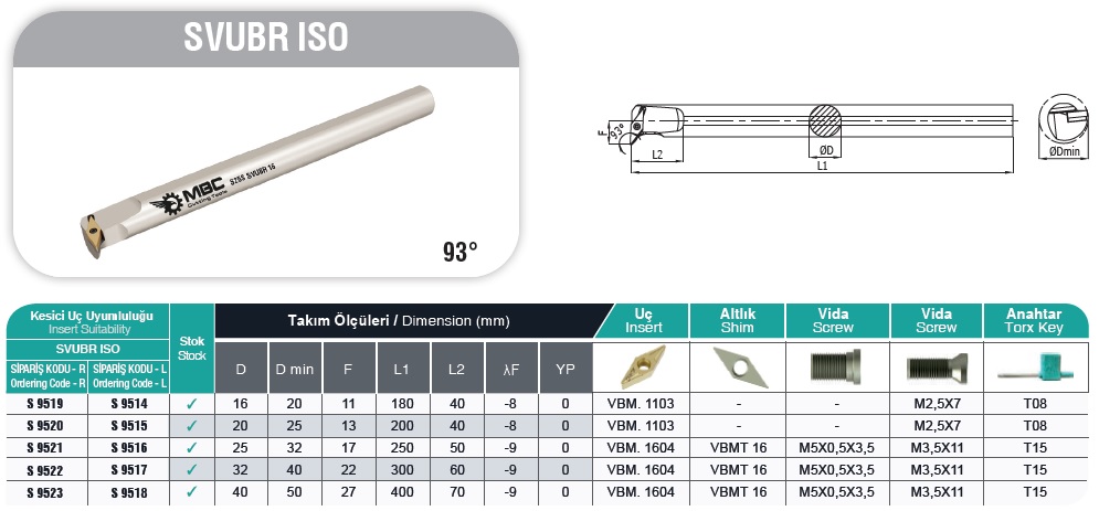 Opis produktu Nóż wytaczak MBC S25S SVUBR 16 VBMT 1604