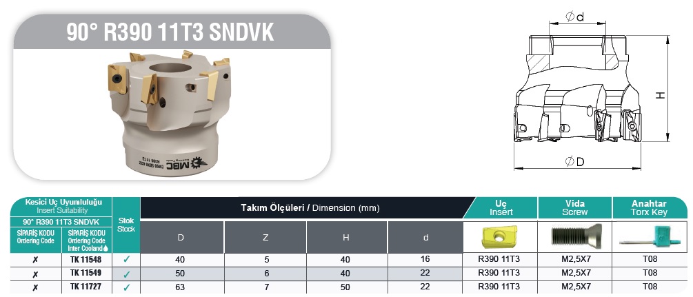 Opis produktu Głowica frezarska MBC EM90 D50x6 A22 R390-11T3-H