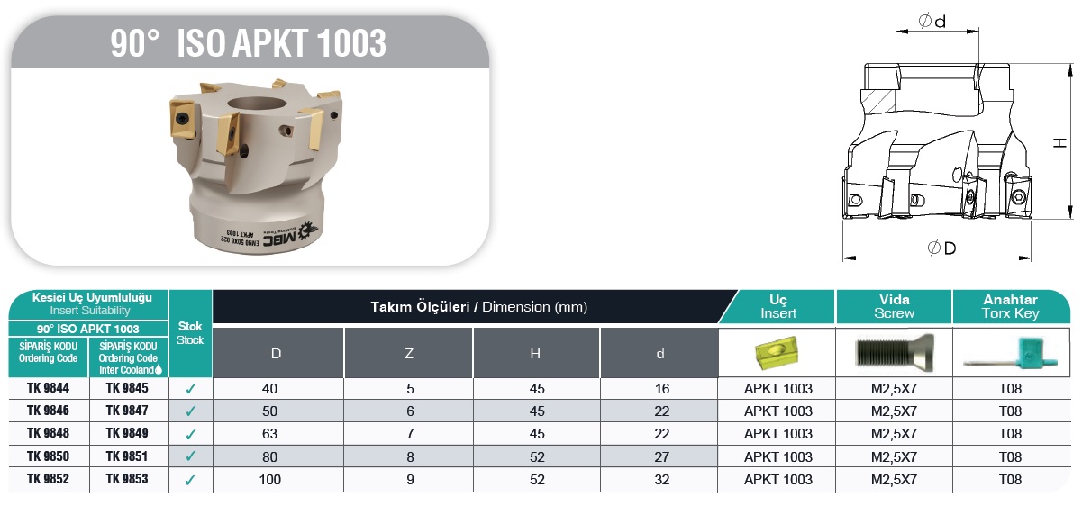Opis produktu Głowica frezarska MBC EM90 D63x7 A22 APKT 1003-H