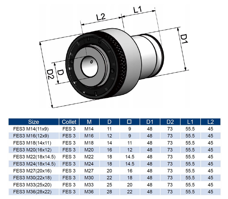 Opis produktu Zabierak ze sprzęgłem do gwintowania FES3 FZS48 M16 12x9