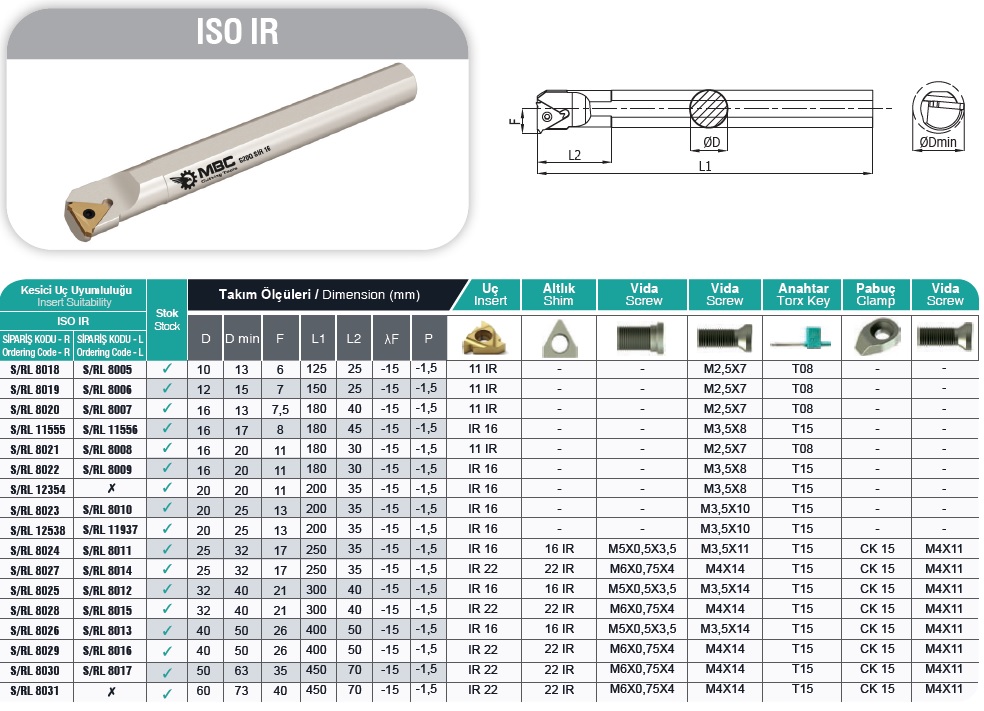 Nóż tokarski MBC SIR S20R 22C 22IR