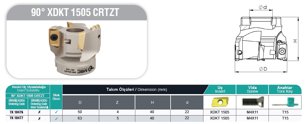 Opis produktu Głowica frezarska MBC EM90 D50x4 A22 XDKT 1505