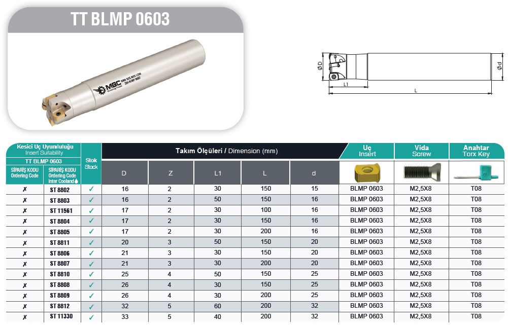 Parametry techniczne produktu Głowica BMR MBC D32 W32 L200 na BLMP 06..