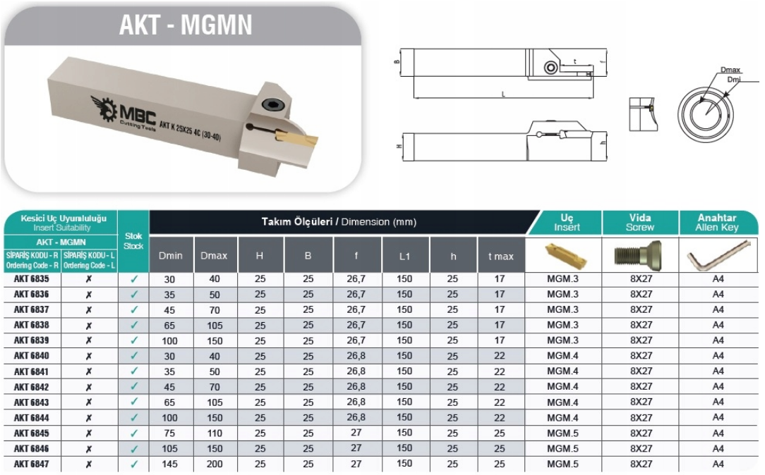 Opis produktu Nóż do rowkowania MBC AKT K-R 2525 4C 65-105 MGMN 400