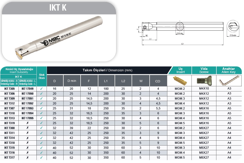 Parametry techniczne produktu Nóż hakowy MBC IKT K-L 20 2C MGMN 200