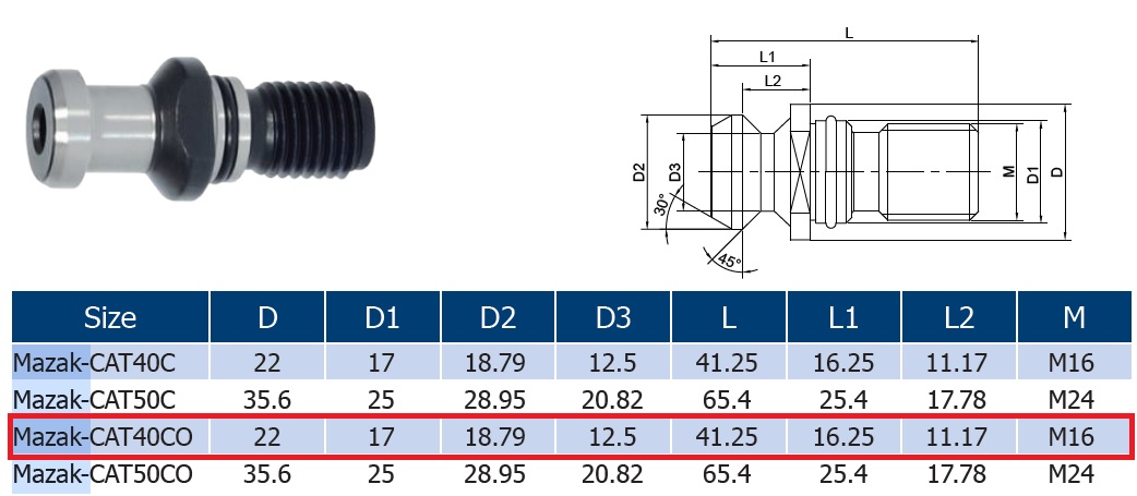 Parametry techniczne produktu Końcówka ściągająca grzybek ISO40 SK40 45 st. MAZAK L41