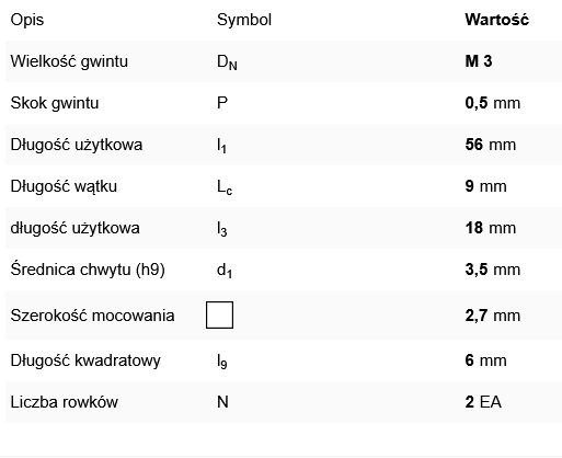 Parametry techniczne produktu Gwintownik maszynowy prosty HSSE M3 typ-B TC216-M3-C0-WY80FC Walter