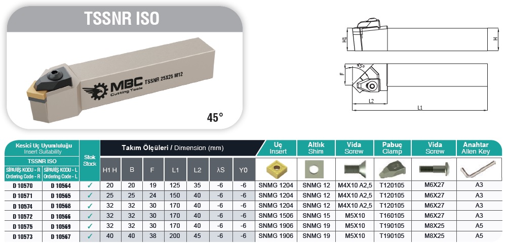 Parametry techniczne produktu Nóż tokarski MBC TSSNR 4040 R19 SNMG 1906