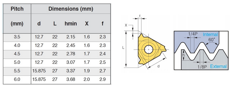Parametry techniczne produktu Płytka do gwintu Koves 22ER 4,5 ISO (1szt)