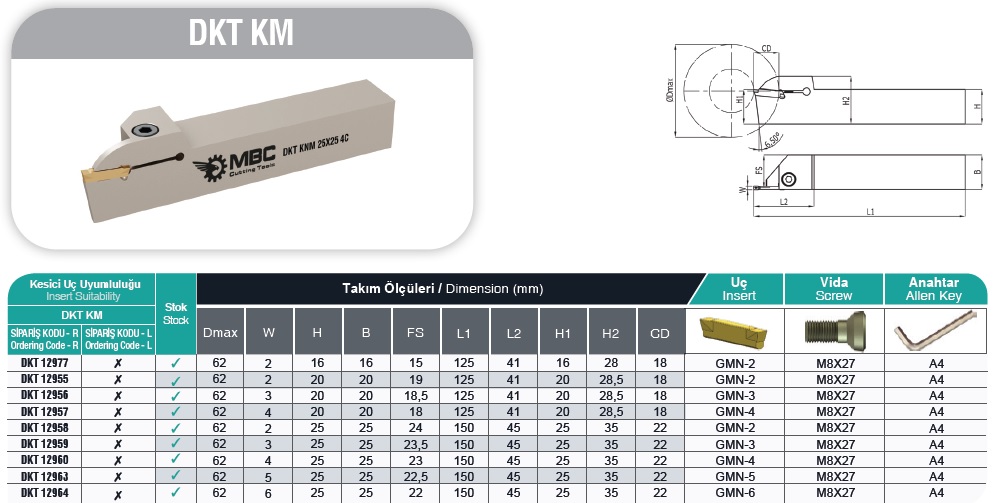 Opis produktu Nóż przecinak DKT KM-R 2525 6C A4 MBC +10sztuk A4R0605M06U00 GMN-6