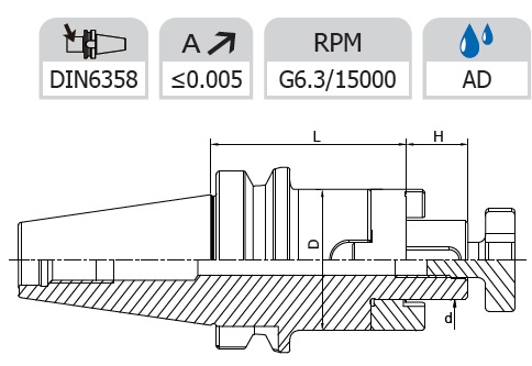 Parametry techniczne produktu Trzpień frezarski zabierakowy fi 22 mm L100 BT50 MAS 403-BT AD