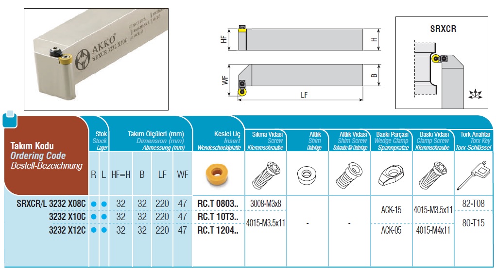 Parametry techniczne produktu Nóż tokarski Akko SRXCR 3232 X10C