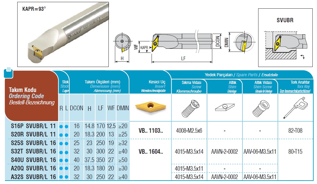 Parametry techniczne produktu Nóż tokarski AKKO S20R SVUCL 11 płytka VCMT 1103