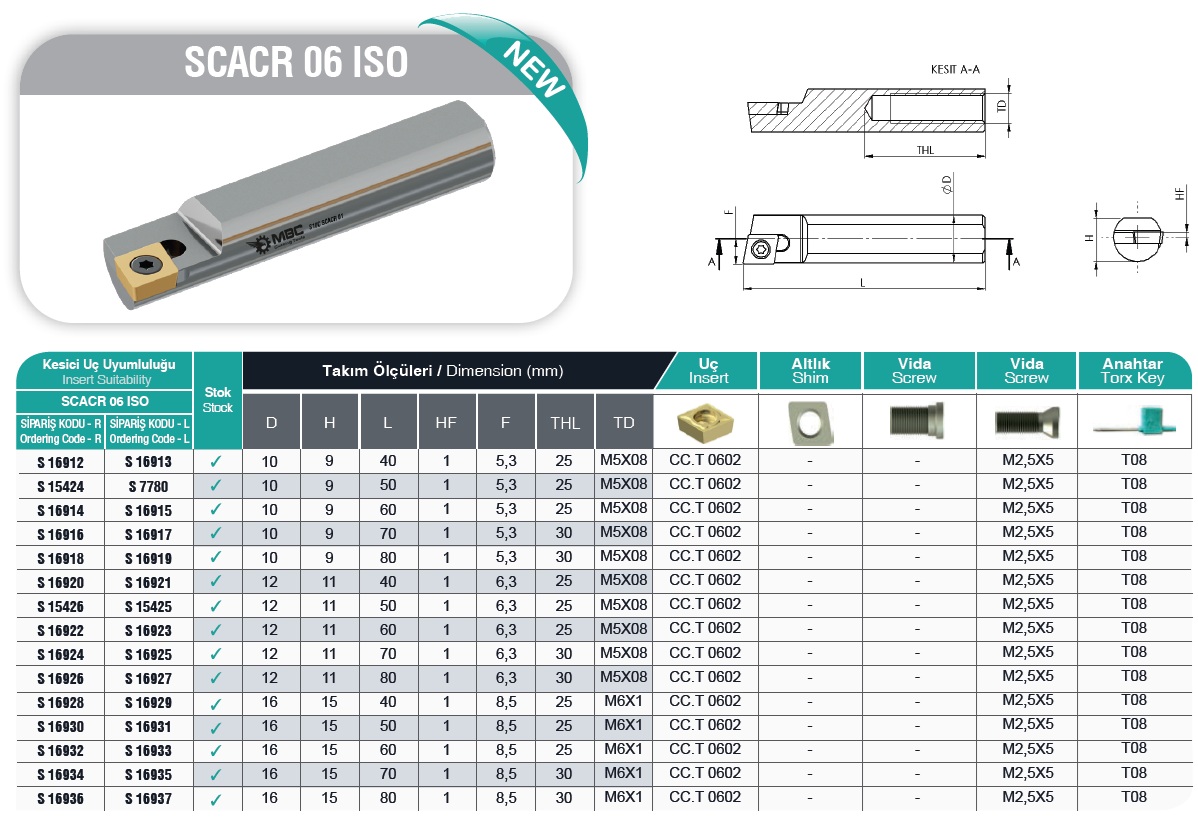 Parametry techniczne produktu Nóż tokarski MBC S12B SCACR 06 L40