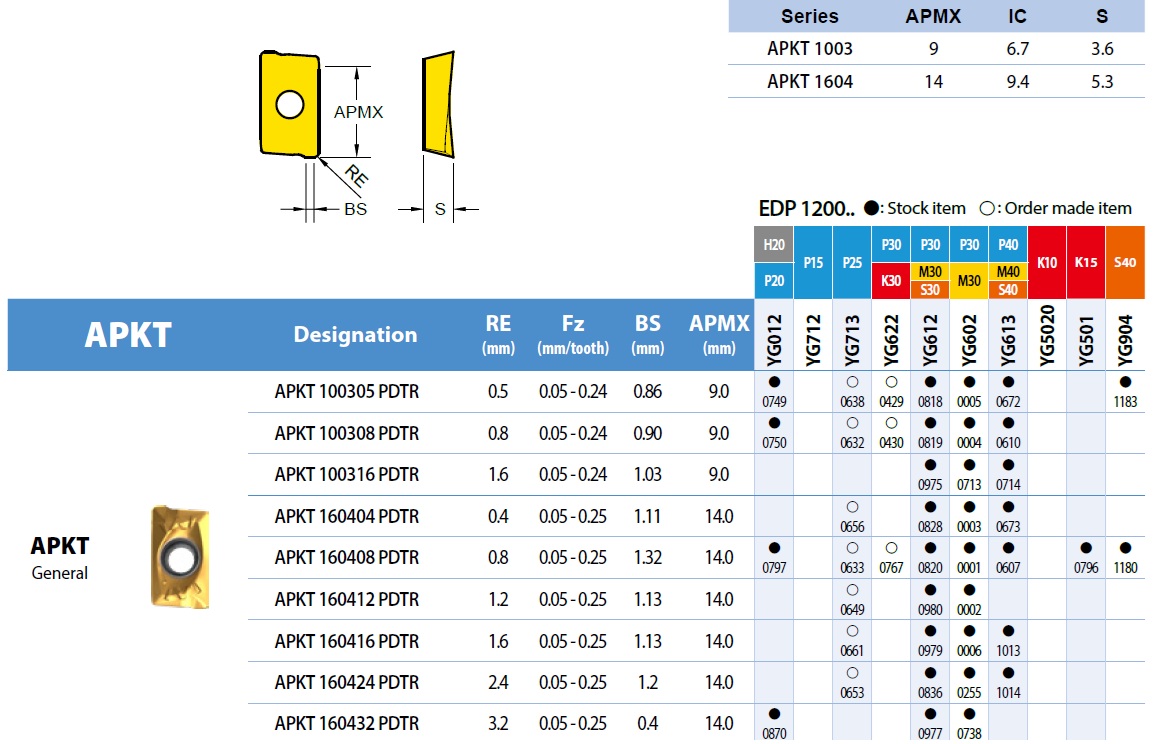 Opis produktu Płytki APKT 160408PDTR YG612 YG-1 10sztuk