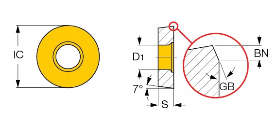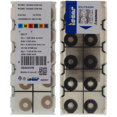 Parametry techniczne produktu Płytki węglikowe RCMX 120400 IC8150 ISCAR do stali i żeliwa 10szt RCMT
